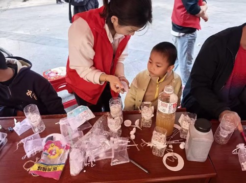 化学实验演示区更是人气高涨。志愿者们现场搭建简易净水器,将蓬松棉、石英砂、活性炭等材料分层放入改造后的塑料瓶中,当浑浊的模拟污水缓缓倒入,经过多层过滤后变成清澈净水时,小朋友们发出阵阵惊叹。直观的实验现象,让大家直观理解了净水原理,也感受到化学知识的实用魅力。