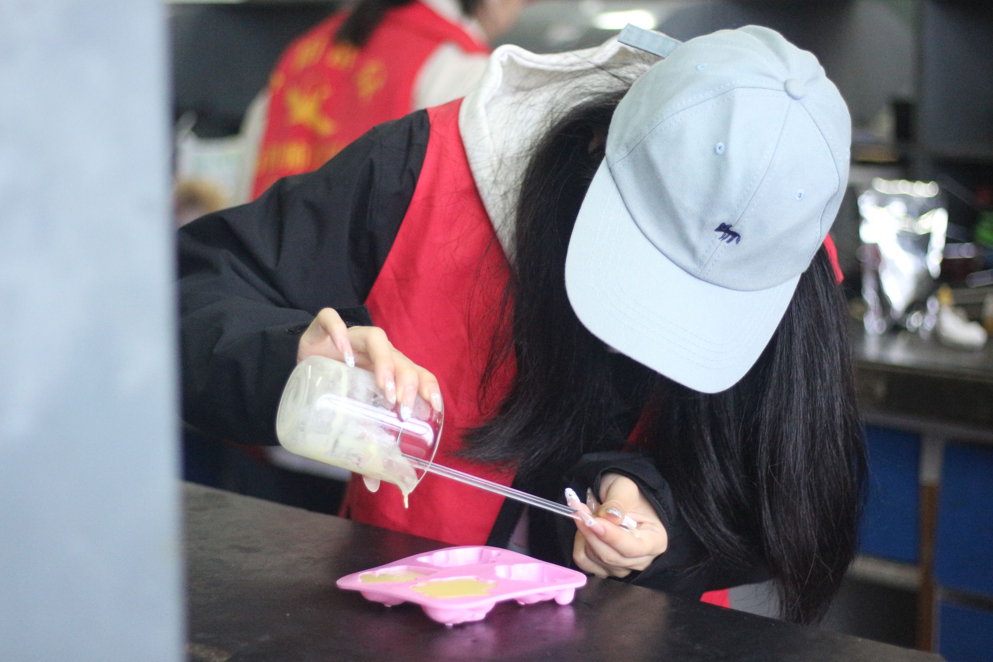 (同学们发挥创意,将皂液注入精美模具)